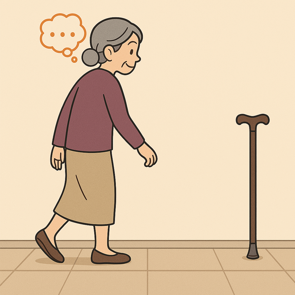 いつも杖をつきヨロヨロの足つきで